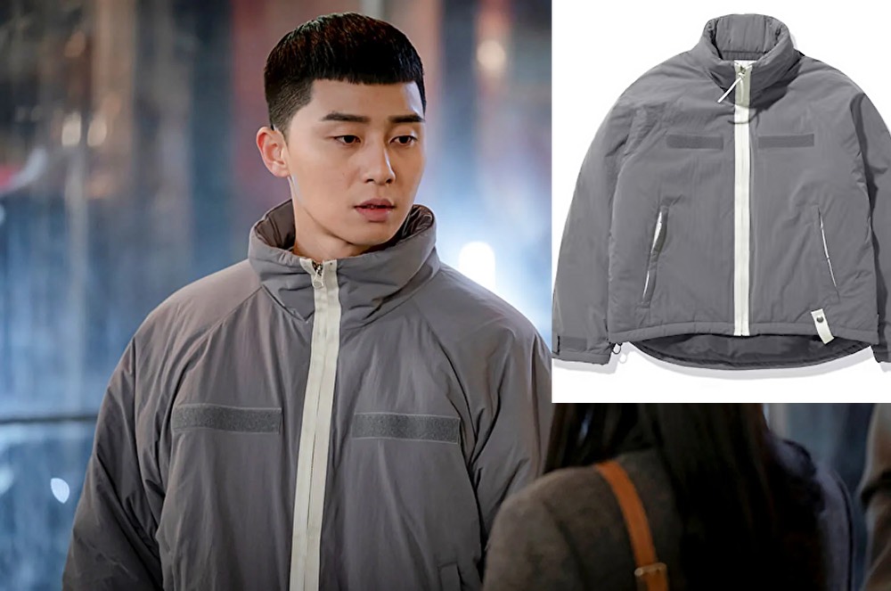 スアがセロイとのキスをチョ・イソに妨害されたシーンで着用していたグレーのダウン。